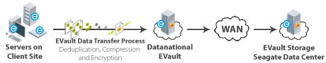 EVault deduplicates, compresses, and encrypts your data from end to end. The result? Much shorter backup windows, a dramatically reduced storage footprint, and ensured privacy.